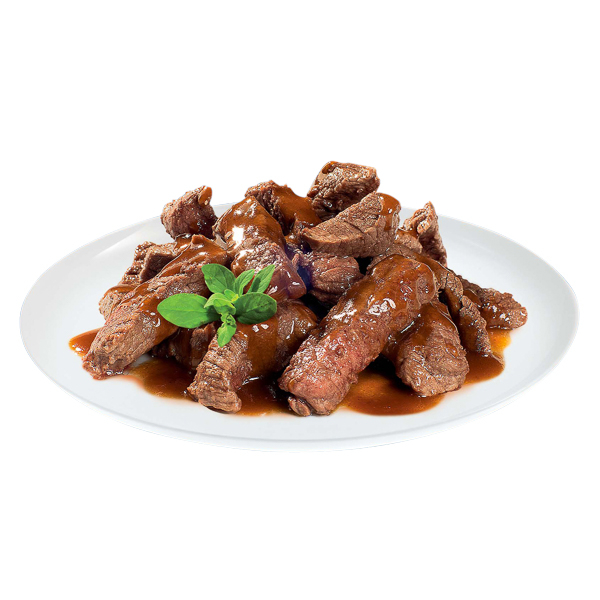 Fileuri din carne de vită carne în sos pentru pisici adulte din toate rasele, fără arome artificiale și conservanți.
