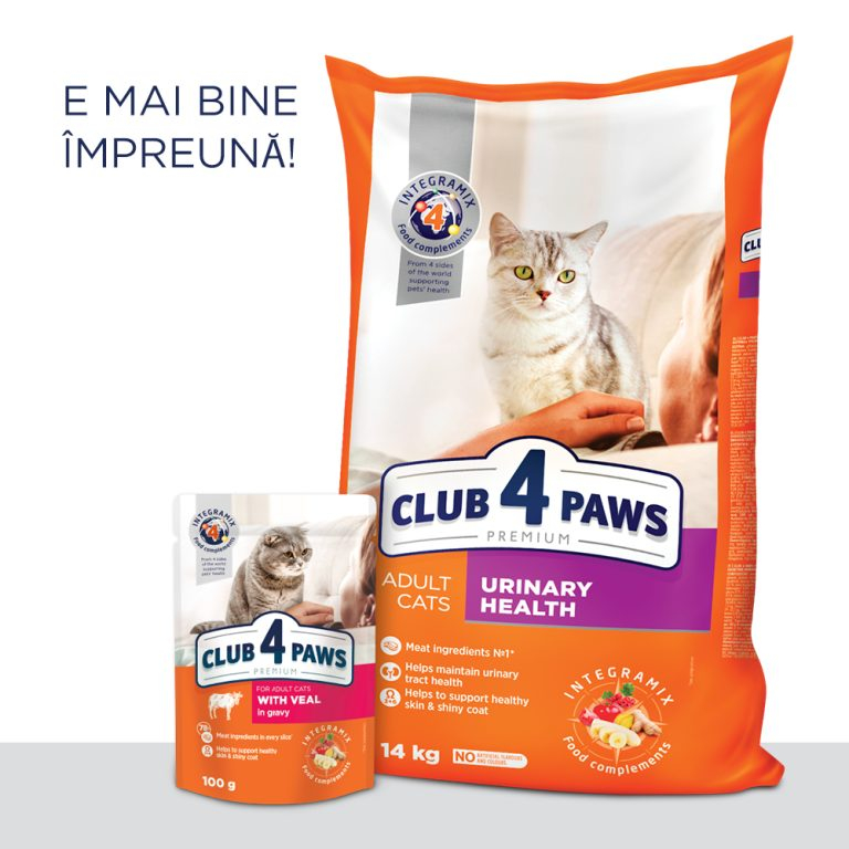 Hrana uscata completa pentru pisici adulte Protejarea tractului urinar “Urinary health”, 14 kg – CLUB 4 PAWS Premium este destinată pisicilor adulte predispuse la boli ale tractului urinar. Complexul echilibrat de Ca, P și Mg asigură prevenirea urolitiazei datorită reducerii cristalelor de sare in urină. Hrana conține 22% carne de pui, care are un coeficient ridicat de digestibilitate. Complexul de acizi grași nesaturați Omega 3 + Omega 6 menține pielea sănătoasă și blana strălucitoare. Hrana este îmbogățită cu INTEGRAMIX pentru susținerea generală a sănătății și imunității animalului de companie.