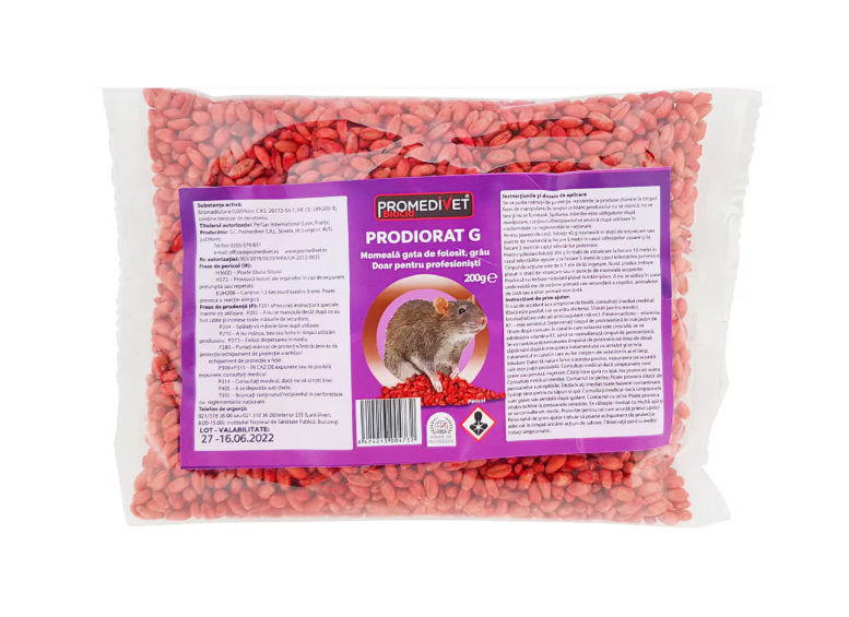 Se va purta manusi de protectie rezistente la produse chimice in timpul fazei de manipulare a produsului (EN 374). In timpul utilizarii produsului nu se manca, nuse bea si nu se fumeaza. Spalarea mainilor este obligatorie dupa manipulare, continutul/recipientul se arunca dupa utilizare in conformitate cu reglementarile nationale. sobolani -public general – interior, exterior in jurul cladirilor: Fixati 10-60 g de momeala in statii de momeala rezistente la manipulari, separate la distante de 10 metri (5 metri in zone de infestatie inalte). Verificati regulat consumul de momeala si schimbati momeala consumata sau stricata pana la terminarea consumului. Repetati tratamentul in situatii unde exista dovada unei noi infestatii (de exemplu urme proaspete sau excremente). Nu miscati sau tulburati punctele de momeala pentru cateva zile dupa asezarea momelii. Daca nu se observa activitatea de sobolani in jurul momelii dupa 7-10 zile dupa inceputul tratamentului, miscati momeala intr-o zona cu activitate mai mare de sobolani. Daca toata momeala a fost consumata din anumite zone, mariti cantitatea de momeala prin amplasarea mai multor puncte de momeala. Sa nu cresteti marimea punctului de momeala. Inlocuiti orice momeala consumata de rozatoare sau care a fost deteriorata de apa sau contaminata de pamant. Statiile de momeala trebuie vizitate doar dupa 5-7 zile dupa inceputul tratamentului si cel putin saptamanal dupa acesta, pentru a verifica daca momeala este acceptata, statiile de momeala sunt intacte si de a indeparta rozatoarele moarte. Reumpleti momeala cand este necesar. Utilizarea acestui produs ar trebui sa elimine rozatoarele in 35 de zile. In cazul lipsei eficientei suspectate la sfarsitul tratamentului, utilizatorul trebuie sa consulte vanzatorul produsului sau sa apeleze un serviciu de control al daunatorilor.